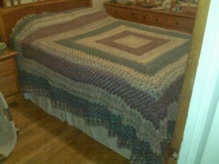 While we were out today, Karma hopped her crate across the floor to our bed and pulled a fourth of our afghan into the 1/2” vents in her crate and proceeded to shred it. The afghan is now a memory.