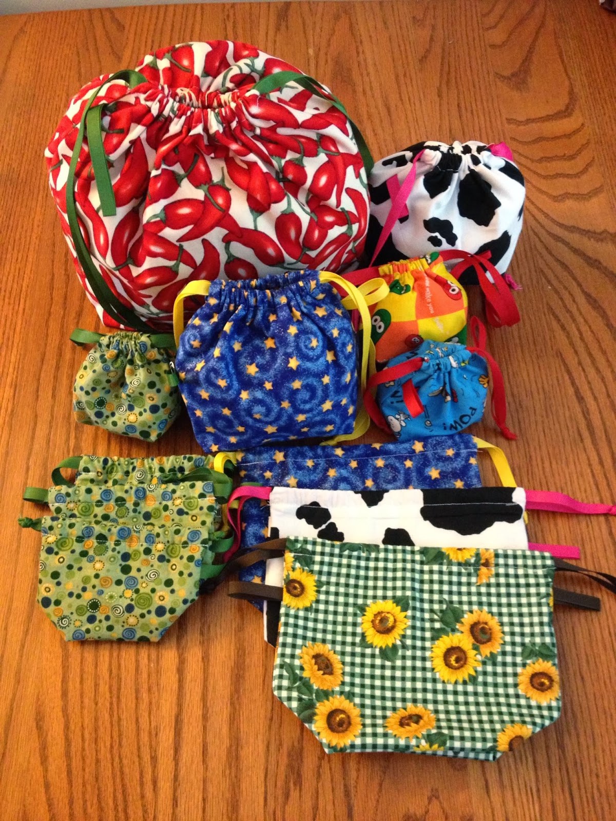I haven’t touched a sewing machine since college, when I realized that I could sew sets of Greek letters for myself, my brothers & my other Greek friends for much less cost than the embroidery shop in our one-horse college town (KKPsi ’til I die!!). It’s been 10 years since I graduated and figured it was high time to see if I could still run a machine. I had plenty of fabric remnants from making sets of letters, and after seeing a litany of adorable project bags in etsy shops, decided to make my own! $20 in grosgrain ribbon & 2 days of toiling later, and I had these: