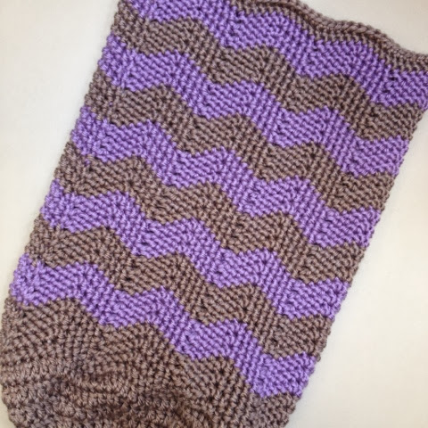 Amy had requested some pea pods for baby Minnie, with chevrons, in pink or purple & gray. After a few minutes at Jo-Ann’s, I had selected a few skeins of Bernat Satin & thought I would be good to go. Until I got home & found nothing on Ravelry that resembled a sleep sack with chevrons or zig-zags. There were waves and ripples, but nothing pointed enough to qualify as a chevron. Zig-zags are close enough to chevrons, as long as you adjust the length adequately. After a hot minute of swatching, I had an idea of how many stitches I would need to get an appropriately sized sleep sack.