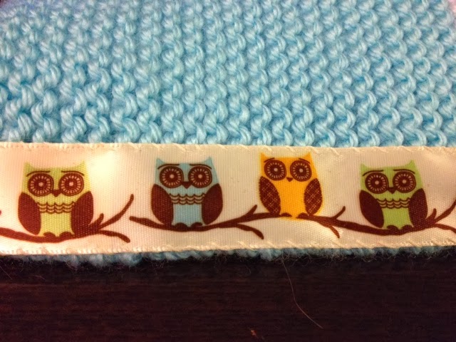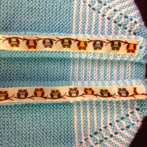 I have used the Top Down Garter Stitch Baby Jacket pattern several times, but I wanted to switch it up with some color & texture. I liked the idea of mixing stripes with color blocking and also wanted to play with garter on stockinette – which ended up reverse stockinette & worked equally well. The blue perfectly matched a spool of grosgrain ribbon I had purchased for another project, but hadn’t used. And this baby’s theme animal was owls, so Baby Ruby’s Jacket just fell together!