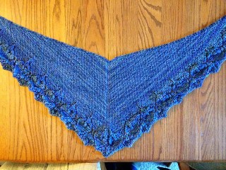 I loved this shawl – it was quick & the short row finishing made the stockinette body of the shawl whoosh! right off of the needles!
