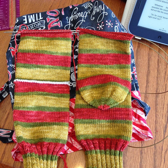 My Fork In The Road Socks by Lara Neel introduced me to my new favorite afterthought heel: the thumb-joint, hat-top heel. Not easy to say, but fairly easy to knit and fits my high-arched feet really well!