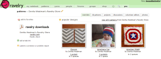 If you are on Ravelry, you can check out the patterns on my pattern store page. Some are free and some are for purchase, but faves and queues on Rav are always free!