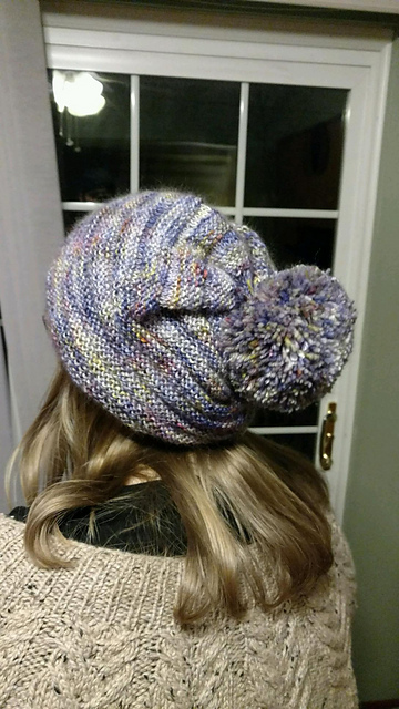 The year of hats started with a hat to try out a new-to-me fiber: Mohair. Mohair takes dye very well, has a lot of shine and apparently wears like iron. I was tempted by a pretty skein at Wool Gathering and it grew into this hat, called Wurm. And the leftover yarn was completely exhausted by the epic pompom on the top!