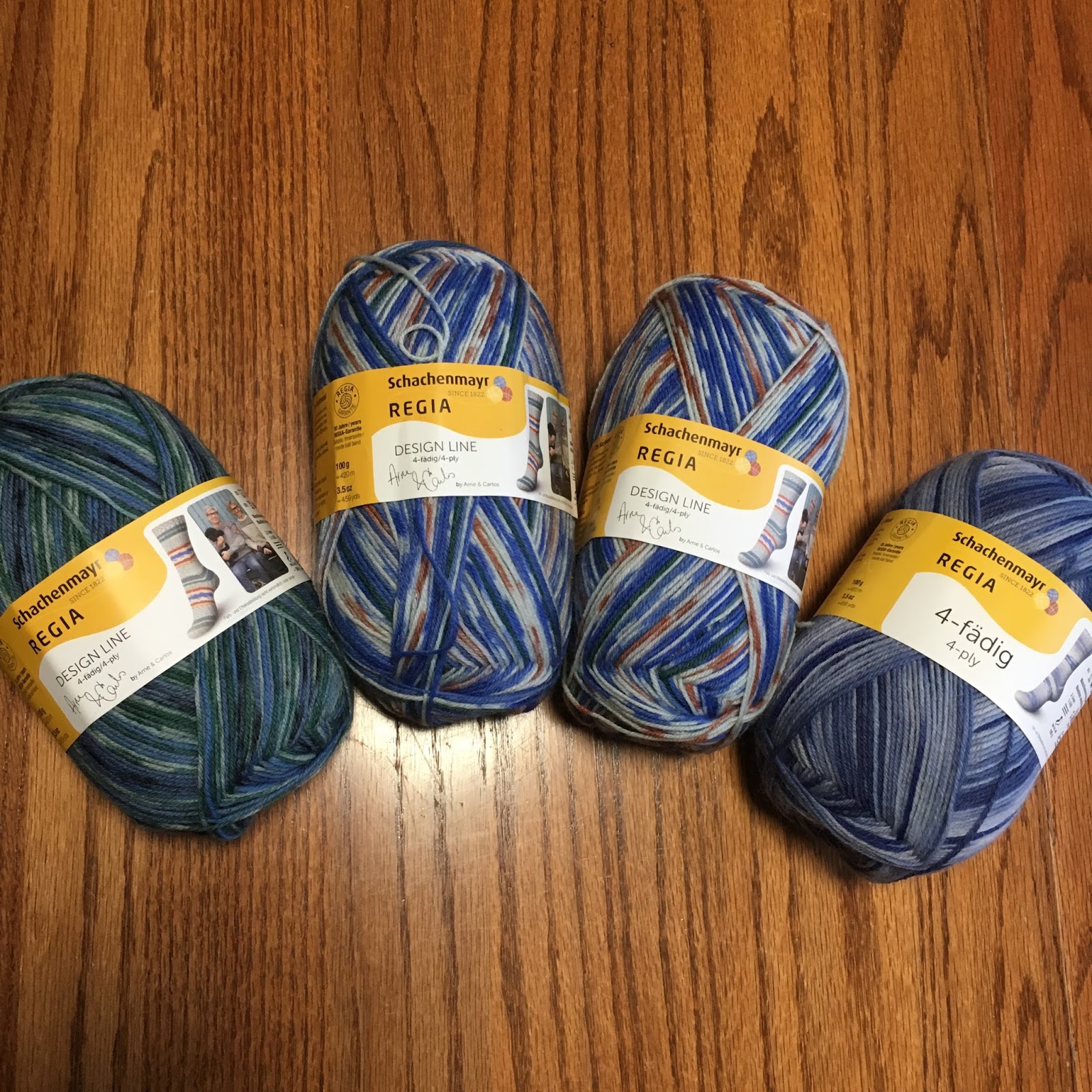 After I had time to review the website and review yarn options (I was also sent a PDF with 4-ply and 6-ply options to choose specific colorways), I sent a few color options back to the customer service rep for Rowan, Schachenmayr & Regia USA. I stuck with the lines I have heard only good things about – and avoided any ungodly bright colors (sadly). Thankfully, the Regia self-patterning sock yarns are really nice and I was able to find several I liked.