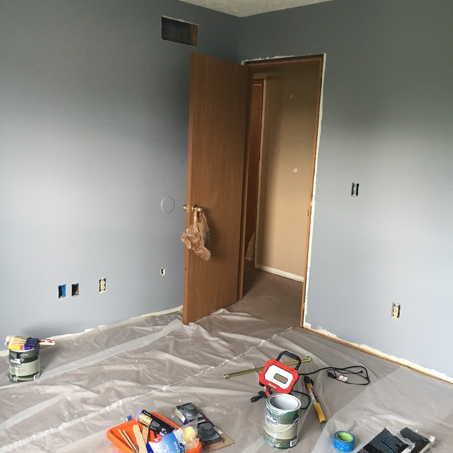 After living in the house for almost a year, we now have an overhead light & a fan in the bedroom! Best of all, the switch next to the door actually DOES SOMETHING now and you don’t have to stumble blindly to a nightstand on the other side of the room to turn a lamp on! It really is the little things.