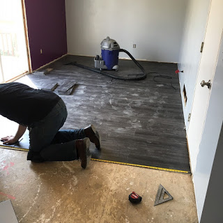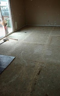 | Ripped up the stick-on ‘hardwood floor’, that was stuck to linoleum, that was glued to underlayment, that was stapled to the subfloor… |