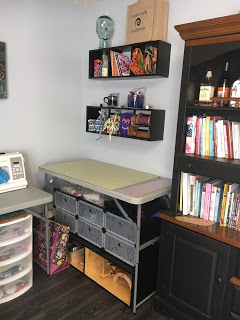 We quickly determined that we would use this area as a crafting area for me. It was on the first floor, so I wouldn’t need 12 million trips up and down the stairs to get something to work on or to let the dogs in and out while I am working.
