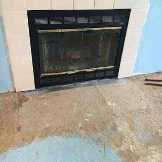 | This is after we took down the sketchy mantle and trim, and ripped up the tiles on the floor. |