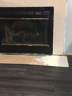 Then, we sketched out the hearth and trimmed the flooring to accommodate it.