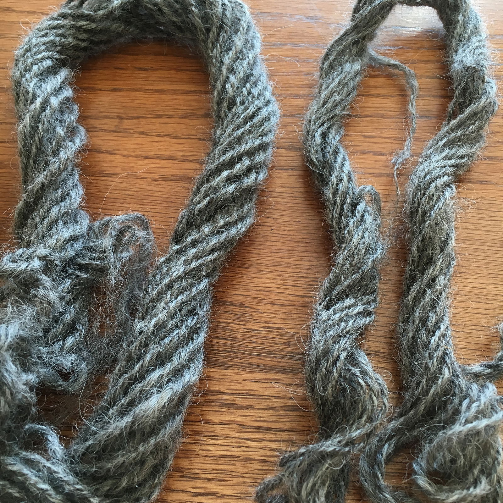 I spun ~15 gr of each, then wound off to divide up each to ply.