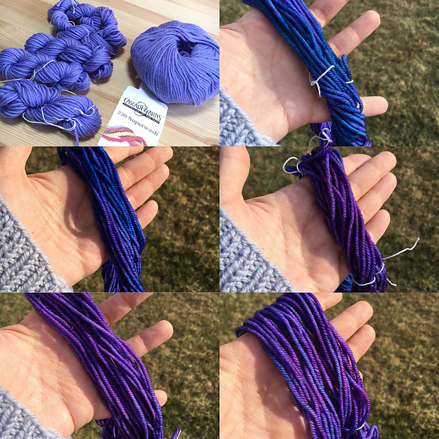 My second thought was that it could be overdyed. I wanted to avoid this if I could, because I had heard you can make a terrible mess of things and ruin the yarn if you don’t know what you’re doing. Felted yarn isn’t much good for anything except… felt. This was superwash, so felting wasn’t really an option, but it could get crunchy if I acid-burned it. Since I didn’t know what I was doing, it sat in my stash, in the bag, for a few years, moved houses, and generally took up space.