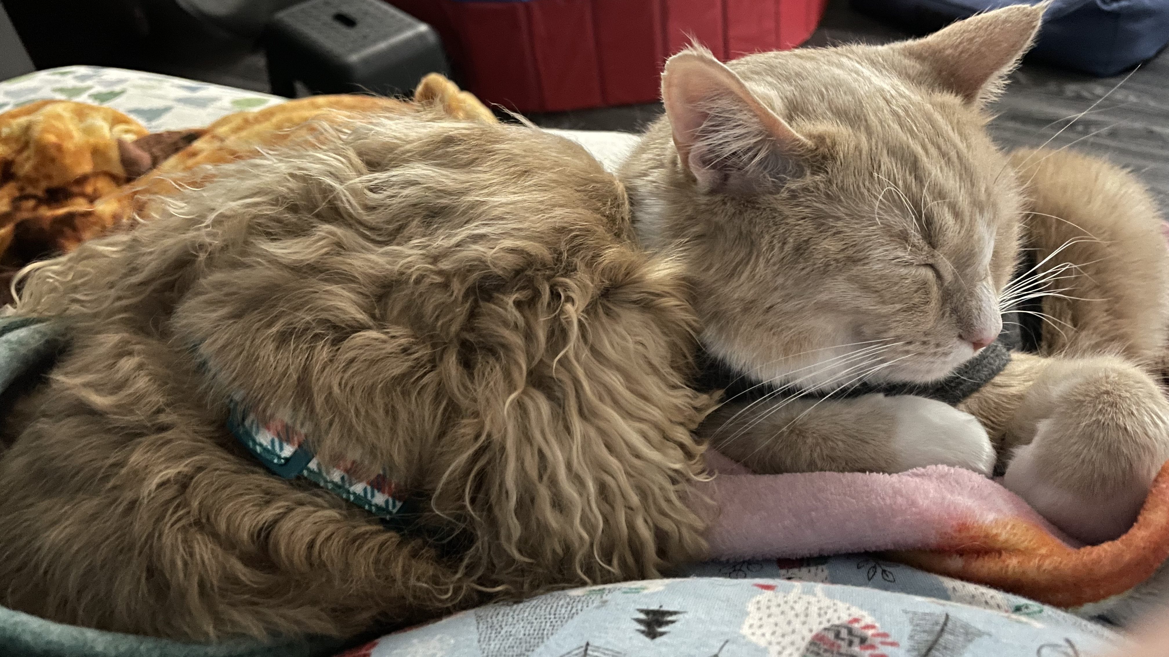 Peace is a cuddle puddle in your pajamas with someone you trust, especially if your name is Orion.